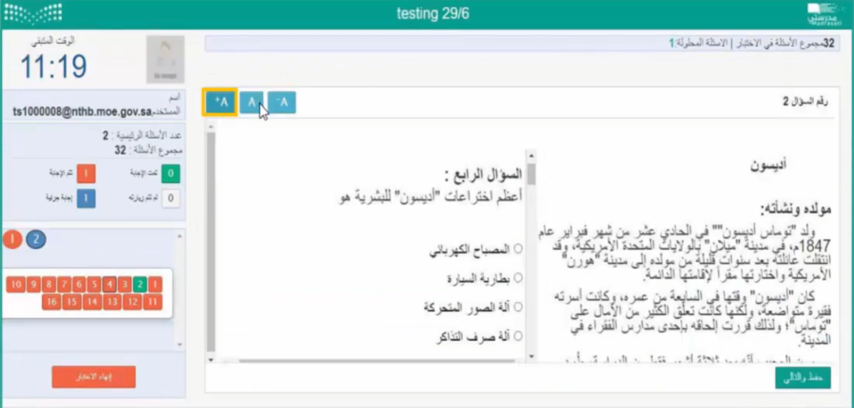 • بإمكانك التنقل بين الأسئلة في القسم الواحد بسهولة، حيث أضاف نظام نمر قسمًا في يسار الشاشة تستطيع من خلاله الانتقال لأي سؤال داخل القسم.